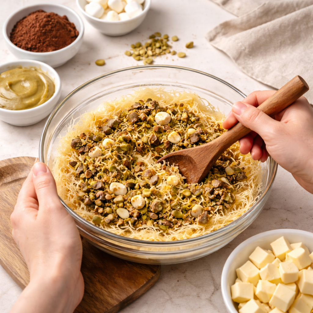 - 중동식 얇은 면인 카다이프를 잘게 풀어 넣고